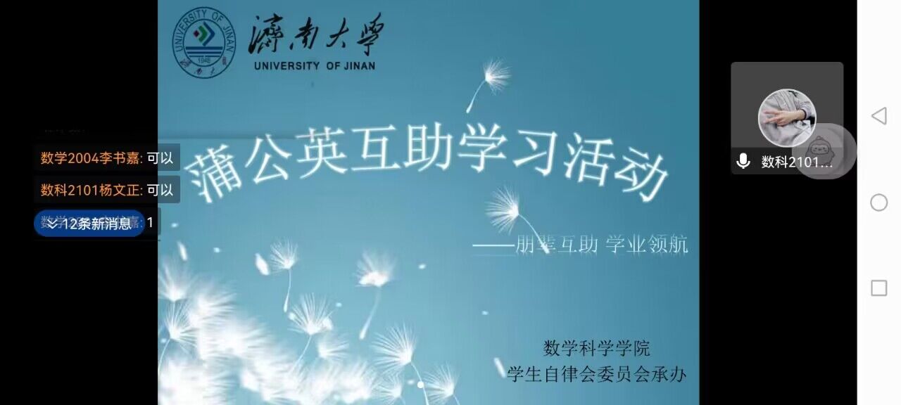 于11月17日晚开展了“朋辈互助,学业领航”主题线上蒲公英互助学习活动。