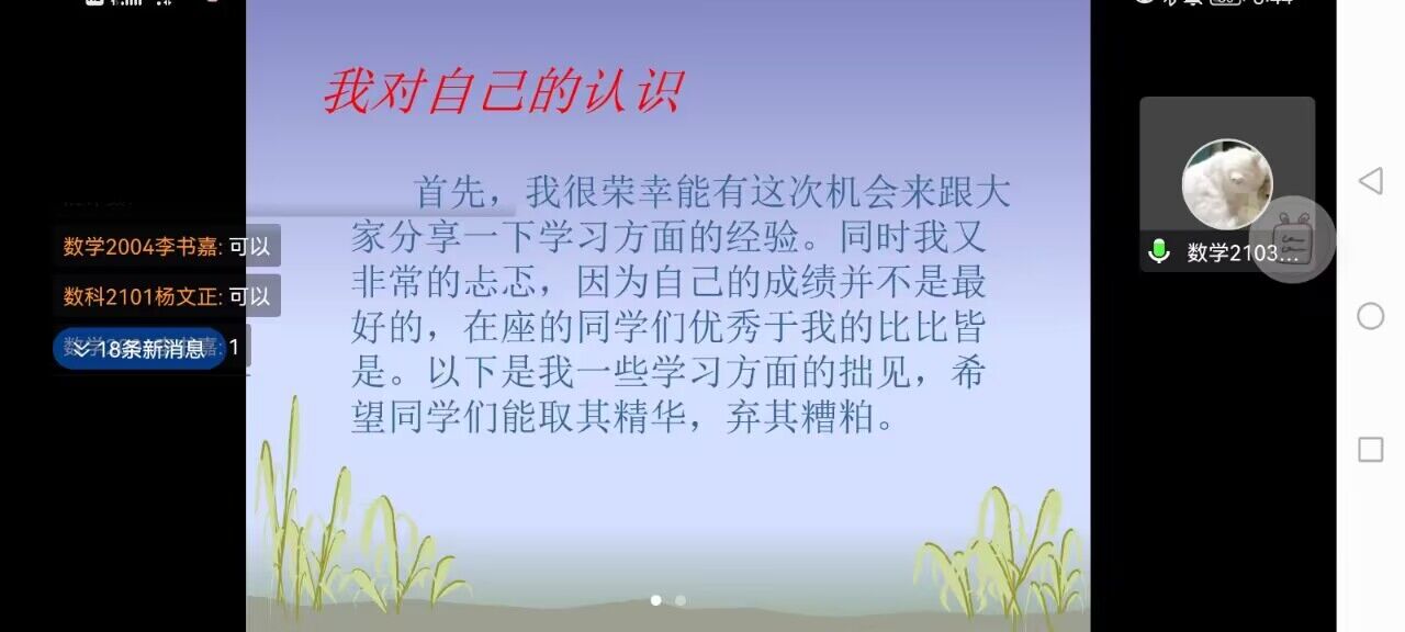 活动以腾讯会议的形式在线上召开。草榴社区邀请了优秀的高年级学长学姐针对科研立项、考研、四六级、考证等大学学习生活方面的问题为同学们解答疑惑,以此为同学们学业以及生涯规划提供了开阔的思路。会议伊始,学长学姐们以自己独特的学习经历以及幽默的话语安抚了新生们不安的心,为接下来的述说营造氛围。对于同学们在大学四年的每个阶段应当提前做好哪些准备学长学姐们做了十分详细的讲解,他们通过分享自己的学习经验,着重为同学们讲解了在学习过程中应如何提升自己的学习效率以及怎样制定学习计划,让同学们受益匪浅。学长学姐们想通过将自己的经历化作宝贵的经验分享给大家的方法,帮助同学们明确大学期间的目标和方向,增进了草榴社区