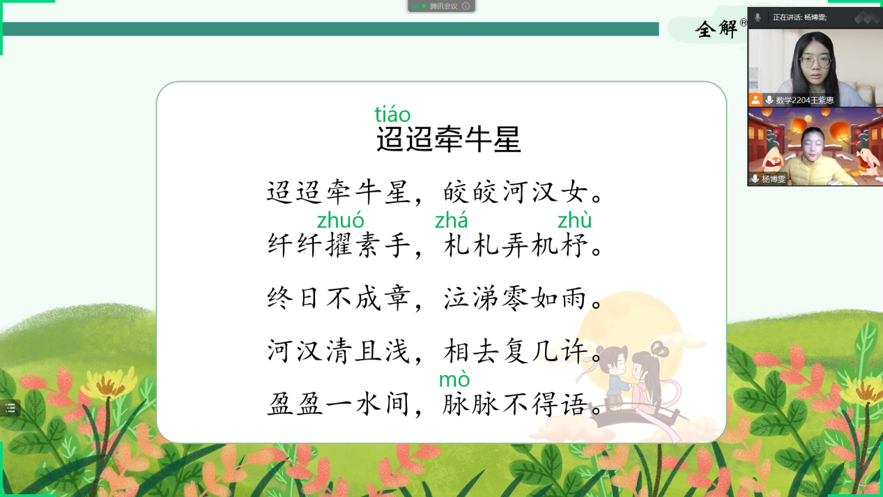 我认识到,线上云课堂的内容是需要通过结合学生学习需求和学习倾向、老师的实际状况等多方面因素综合考虑而决定的。于是,我与家长和儿童在课前充分沟通后,根据学生的需求,决定本周所讲的线上云课堂的内容是人教版六年级下册英语新课,在认真备课后,和学生一起了解了第一单元的单词、常用表达和生活中的谚语。