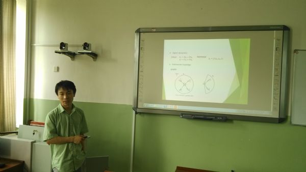 报告会上,肖峰教授从多智能体系统的工程背景入手,介绍了多智能体系统分布式协同控制的相关概念和发展概况,提出了多智能体系统基于边异步数据采样的一致性问题,详细阐明了解决该问题的主要思想和研究思路,并提出了进一步研究的科学问题。会后,复杂系统分析与控制团队的师生们还就报告中的相关问题和多智能体系统的国内外研究现状和趋势与肖峰教授进行了探讨和交流。