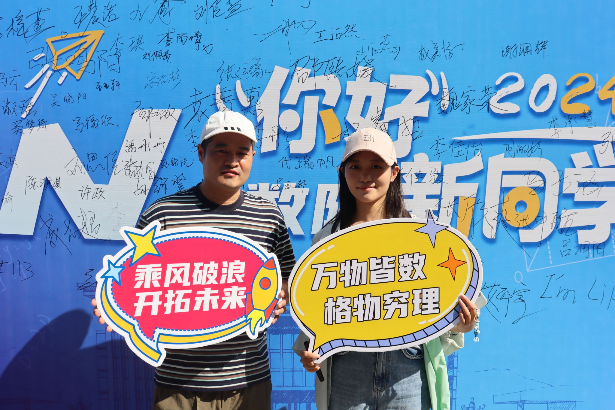 科创育人、实践育人、历年推免情况等宣传展板,引导新生坚定理想信念、树立远大理想、开启学术追求,特设文化签名墙和创意书签,在互动中拉近了新生之间的距离,更好地感受大学的文化氛围,彰显文化育人功能。一条条暖心的标语既饱含了殷切期望,更是对新生的美好祝福。