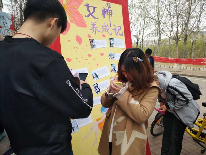 女生部的组织过路行人参与有关女生趣味问题的答题,以答题的形式普及了有关女生安全类、心理类、生理类的知识,并给参与者颁发了奖品;志愿者们还在准备好的展板上展示事先准备好优秀女生的自我介绍、学习经验、优秀美德等个人信息及照片,更好的引导学生关注自身思想素质、道德修养、文化内涵和心理健康。