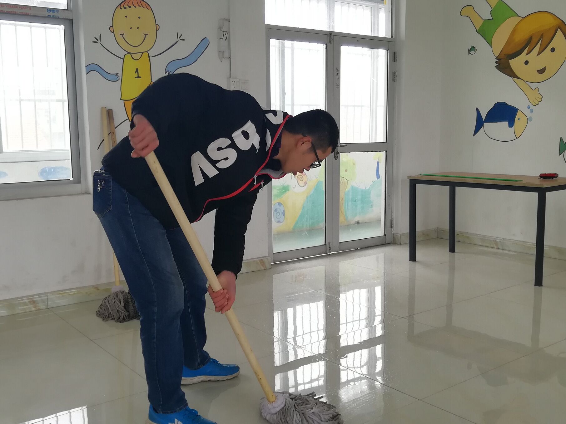 一路上,领队董亚茹同学向大家介绍了活动的主要流程以及注意事项,志愿者们认真聆听并做记录,对即将到来的志愿活动摩拳擦掌、跃跃欲试。到达后,他们在负责老师的安排下合理有序的分好工,接着便各自忙起了自己的工作。志愿者们认真细致地打扫了孩子们的寝室、运动室、杂物室和训练室的每一个角落,无论是屋角还是门槽,都不留灰尘,他们又将活动室和个训室里的物品摆放整齐,最后临走前,将走廊拖得干干净净。他们的辛勤劳动得到了老师们的赞叹与高度评价,这次活动为那里的孩子们提供了清洁舒适的环境,让在他们一片洁净的环境中学习和成长,使他们感受到满满的关怀与温暖。活动结束后,志愿者们依依不舍的离开,并纷纷表示希望有机会能再来到这里,为孩子们献出自己的一份温暖与爱心。