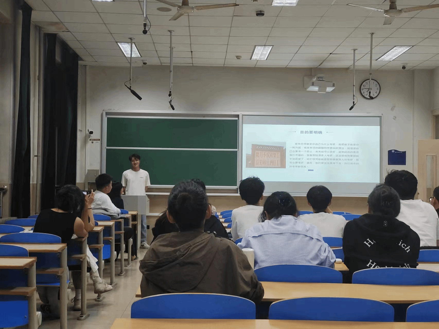 靳副院长从理想信念、人生追求、专业成才、职业竞争等四个方面展开讲述,用幽默风趣的语言以及详实素材给同学们提供了有效应对考研的策略和要点。他鼓励同学们结合自身情况选择报考合适的院校,积极投入考研行动。