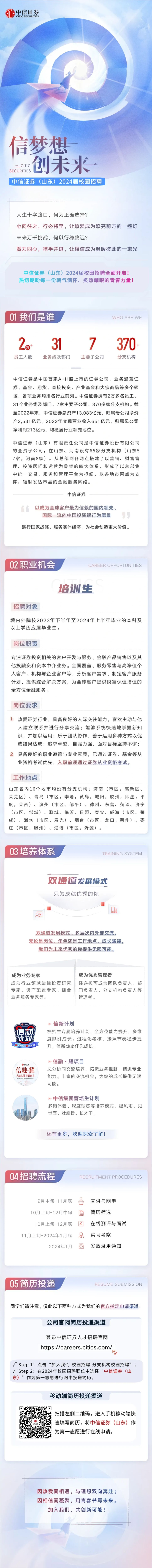 信梦想,创未来 | 中信证券(山东)2024届校园招聘全面启动!